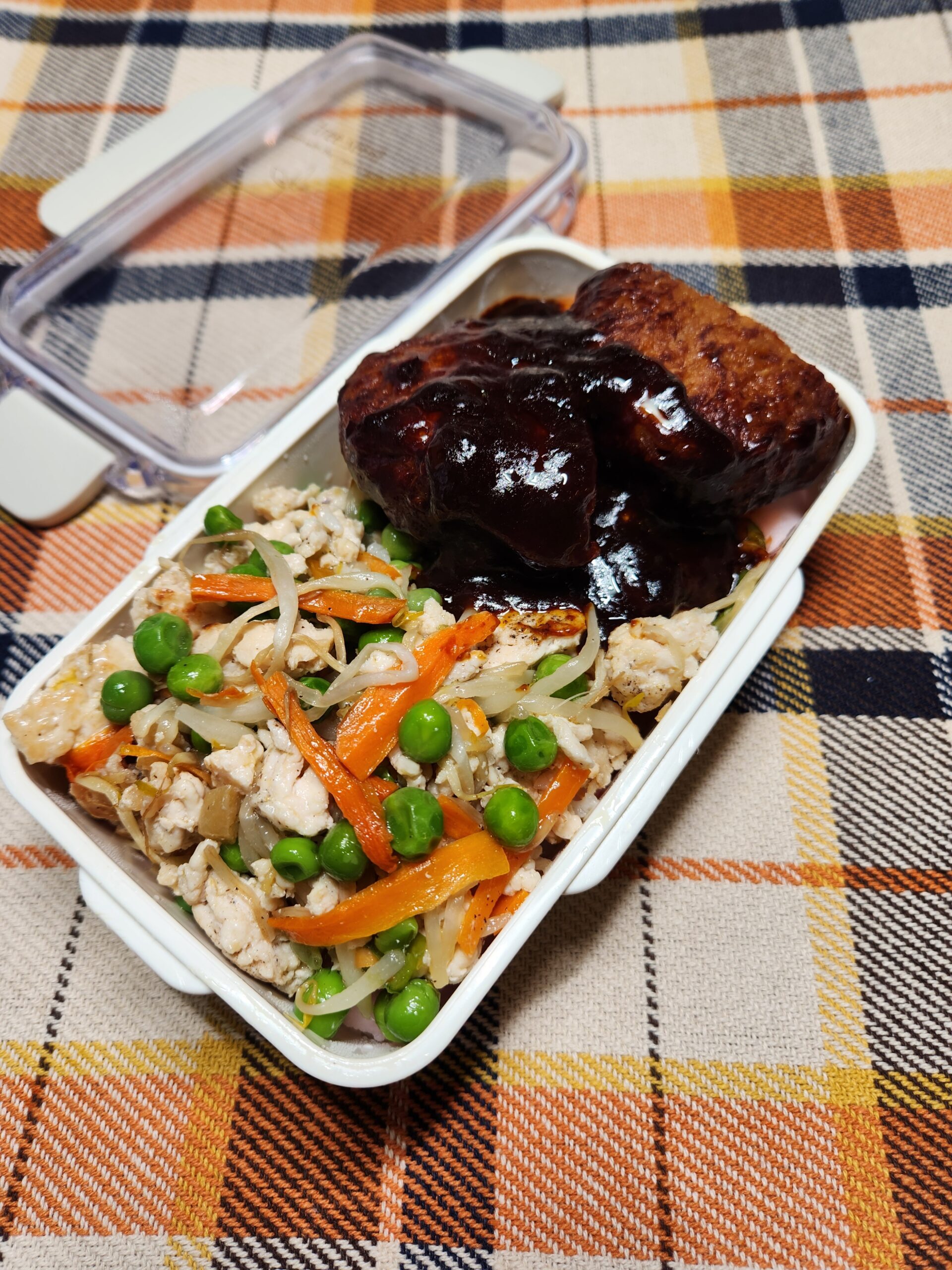 お弁当の方は、手抜きのハンバーグです。