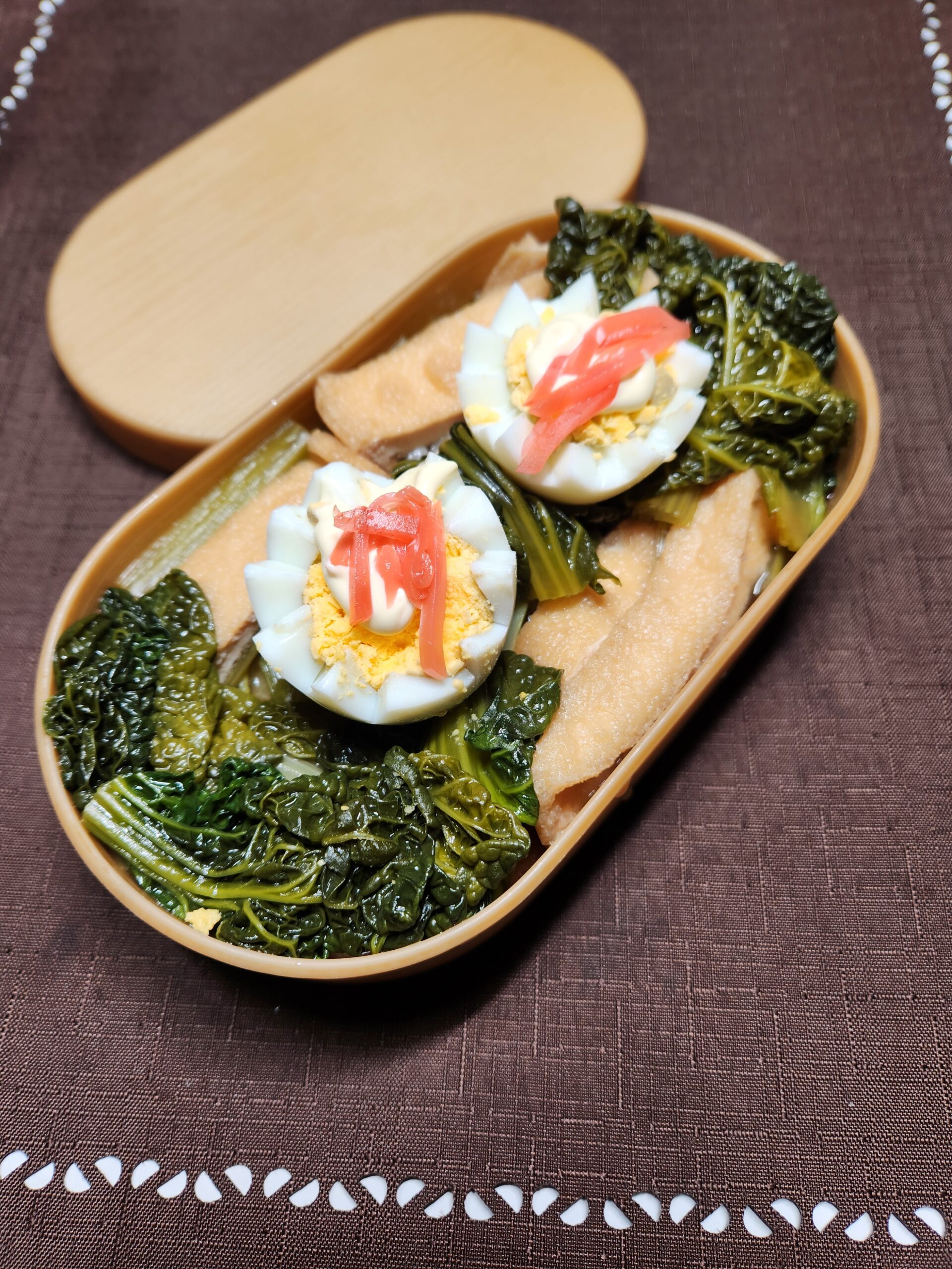 お弁当は、青菜と油揚げの煮物です。